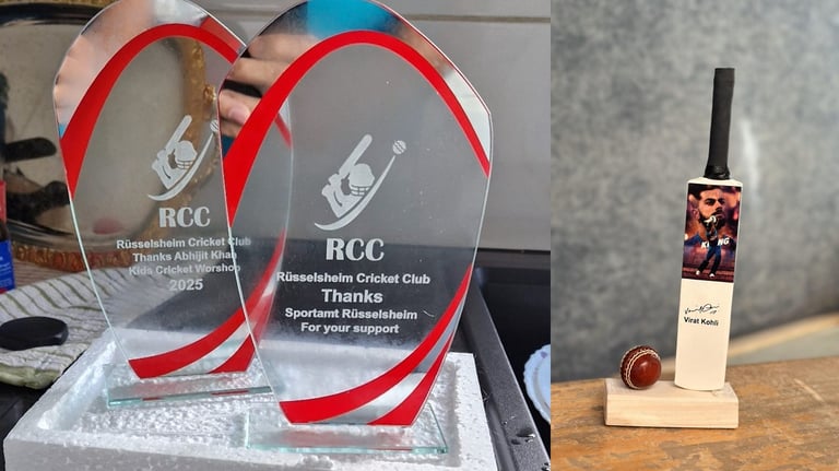 President of RCC e.V. Mr. Mohsan Hayat welcomed Ms Tettenborn with a bouquet and Dr. Shahzad Nawaz Syed presented her with a "Thank You Trophy" for all the support and cooperation of Sportamt Rüsselshiem. After a warm welcome by RCC e.V. Vice President Dr. Ashapakh Shaikh, Head Coach of FICA, Mr. Abhijit Khan also presented a souvenir from Belgium National Cricket to Ms Tettenborn. Mr. Saud Ahmed hosted the event.